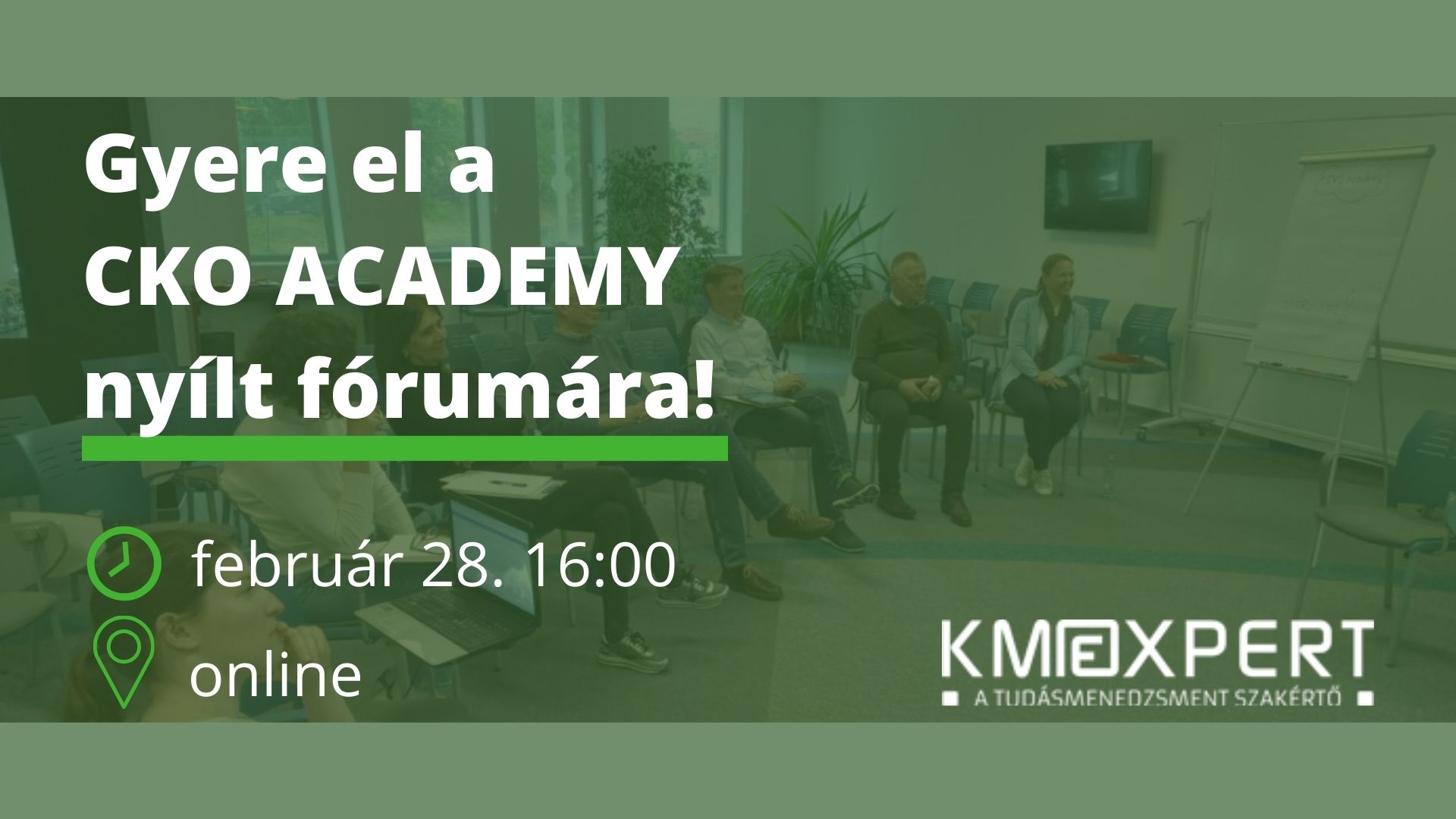 Február 28-án (szerdán) 16 órától ONLINE formában nyílt napot tartunk március 28-án immár a harmadik évfolyammal induló átfogó tudásmenedzsment (TM) képzésünkről, a CKO Academy-ről. Egyre többen ismerik fel, hogy a versenyképességben milyen meghatározó szerepe van a tudástőke minőségének és a tudásgazdálkodás színvonalának. Az azonban még önmagában nem elég, hogy a TM-et stratégiai tényezőként emlegetjük, ha […]