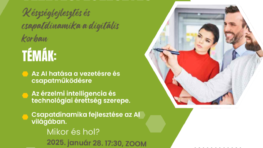 - Január 28-án folytatjuk Elérhető MI sorozatunkat. Ezúttal egy igen interaktív, online workshop-on várunk mindenkit, aki kíváncsi az MI szerepére a vezetőfejlesztésben.